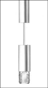 - Released force of drive spring accelerates arcing rod upward, causing rapid elongation of the arc in the solid-material-lined bore. Under high-fault conditions, heat from confined arc causes solid material in the large-diameter lower section of the arc-extinguishing chamber to undergo thermal reaction, generating turbulent gases and effectively enlarging the bore diameter so that the arc energy is released with a mild exhaust. Under low-to-moderate-fault conditions, arc is extinguished in the small-diameter upper section of the arc-extinguishing chamber, where deionizing gases are effectively concentrated for efficient arc extinction.